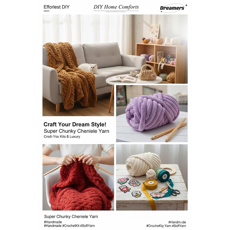 Bu 3 cm'lik ultra kalın çap, hız ve stil için tasarlanmıştır. Cömert hacmi nedeniyle, 45 dakikadan kısa sürede şık Kendin Yap "Tıknaz Çanta" veya tek bir öğleden sonra tam boyutlu bir kanepe atmak. Çok yönlülüğü sayesinde çeşitli projeler için "Altın Standart"tır: